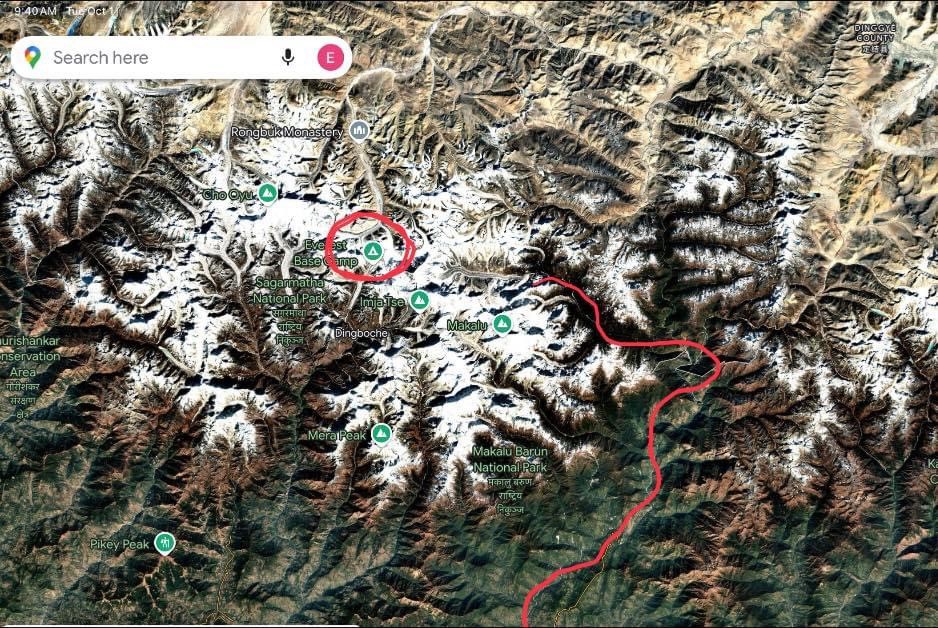 Τίποτε δεν είναι υπερβολικό σχετικά με το Έβερεστ: η μεγαλοπρέπεια, η απόμακρη ψυχρή ομορφιά, η υπεροψία της "Αυτού Υψηλότητάς" του. Η υπερβολή εδώ αφορά την επιστημονική μελέτη που, όπως διαβάζουμε σε άρθρο του BBC, αναφέρεται στη μετρήσιμη(;) ανύψωση του γίγαντα, εξαιτίας της διάβρωσης που προκαλεί στην περιοχή ο ποταμός Arun (στο σχήμα κατωτέρω διαφαίνεται η κορυφή του Έβερεστ και με κόκκινη γραμμή δειχνεται η ροή του ποταμού).