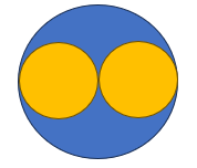 Μάλιστα το ύψος της διαβροχής είναι αντιστρόφως ανάλογο της διαμέτρου h∝1/R. Ή διαφορετικά, h*R=σταθ. Αν λοιπόν μειώσουμε τη διατομή κατά το μισό και βάλουμε τους δύο σωλήνες δίπλα-δίπλα, θα έχουμε διπλάσιο ύψος διαβροχής. Στην πρόσοψη (στη διδιάστατη όρθια όψη) θα έχουμε το νερό να ανεβαίνει σε μια στήλη ίσου πάχους (κάθε φορά που οι διατομές θα υποδιπλασιάζονται θα ανεβαίνει κατά h). Από την πλευρά του όρθιου παρατηρητή θα είχαμε διατήρηση του πάχους και -φαινομενικά- του όγκου της στήλης. Χονδρικά, αυτή είναι και η εντύπωση του δένδρου θα που αποκόμιζε ο Da Vinci και κάθε άλλος όρθιος παρατηρητής. Από πάνω όμως, ο παρατηρητής που βλέπει κάθετα τη διατομή, δε βλέπει διατήρηση της επιφάνειας άρα και του όγκου. Δείτε πώς φαίνεται από πάνω η πολύ μικρότερη συνολική επιφάνεια των δύο κίτρινων διατομών (κάθε μία με μισή ακτίνα από την αρχική), σε σχέση με την επιφάνεια του αρχικού σωλήνα (μπλε).