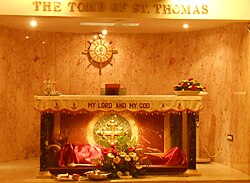 Πολύ αργότερα, στις αρχές του 16ου αιώνα, οι Πορτογάλοι που έφτασαν στην περιοχή βρήκαν εκεί χριστιανικές κοινότητες, φορείς της συγκεκριμένης παράδοσης σχετικά με την ίδρυση της τοπικής Εκκλησίας από τον Θωμά, καθώς και για το μαρτύριό του στην περιοχή. Οι Πορτογάλοι έκαναν ανασκαφές στο τόπο που θεωρούνταν ως ο τάφος του Απόστολου. Λέγεται ότι ανακάλυψαν οστά, τα οποία διαφυλάσσονται έκτοτε και βρίσκονται σήμερα εγκιβωτισμένα στον βωμό εντός της ομώνυμης εκκλησίας. Το σημερινό κτίσμα έχει ανακατασκευαστεί από τους Άγγλους επικυρίαρχους στο τέλος του 19ου αιώνα, αντικαθιστώντας το παλαιότερο και σεμνότερο κτίσμα που έκτισαν οι Πορτογάλοι τον 16ο αιώνα.